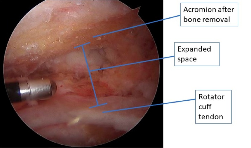 An arthroscopic image of an "impingement lesion" under the acromion.